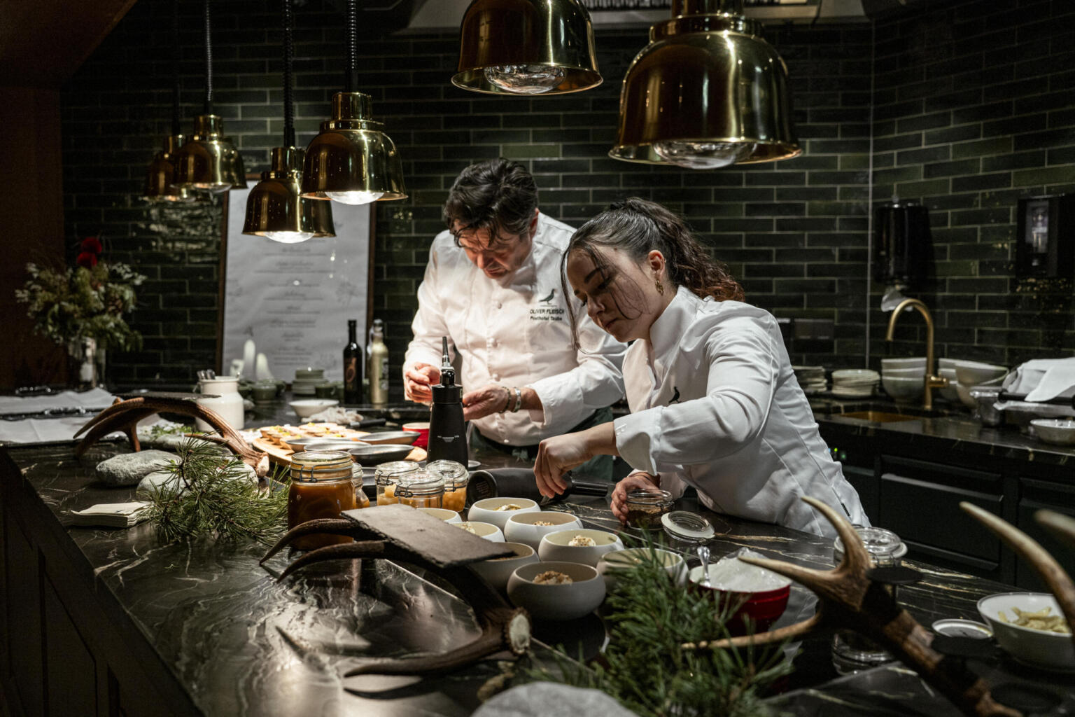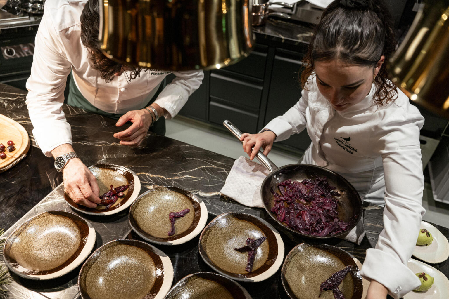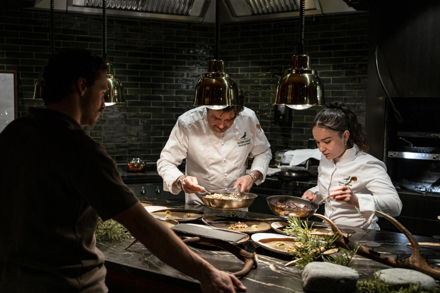 In den Wintermonaten wird der Weinkeller des Posthotel Taube zur Bühne für besondere Genussmomente. Jeden Donnerstag empfängt Sie Küchenchef Oliver Fleisch persönlich: Der Abend beginnt mit einem Aperitif und ersten Grüßen aus der Küche am offenen Tauben-Show-Grill – und führt anschließend in den Weinkeller, wo ein exklusives 8-gängiges Menü an der großen Tafel serviert wird. Im Mittelpunkt stehen regionale Wurzeln, neu interpretiert mit weltoffenen Einflüssen – ganz im Sinne der Taube: „Gejagt – Gefischt – Gegrillt. Montafoner Wurzeln – aus der Welt zurück in die Heimat.“ Ein Abend, der verbindet – mit bis zu zehn Gästen, guten Gesprächen und sorgfältig abgestimmter Wein- oder alkoholfreier Begleitung.